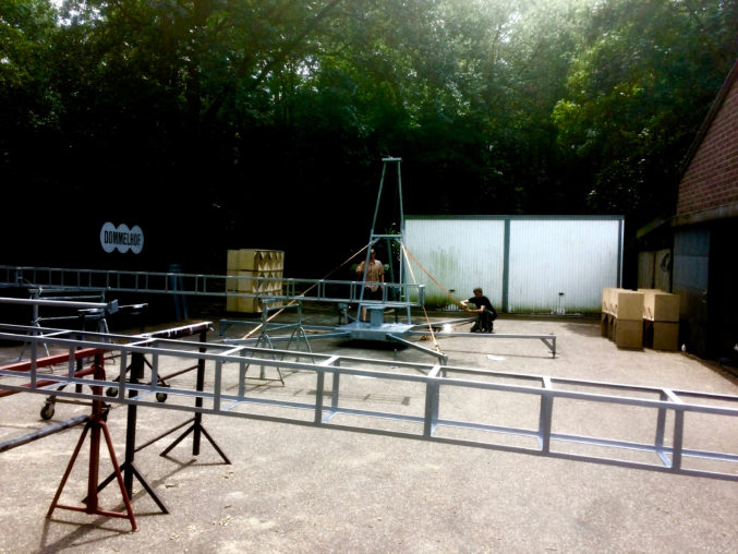 Enkele weken geleden kwam Kevin Trappeniers bij C-TAKT verder werken aan zijn AntennA. Samen met het atelier van het Provinciaal Domein Dommelhof ging hij aan de slag om deze constructie verder in mekaar te zetten.