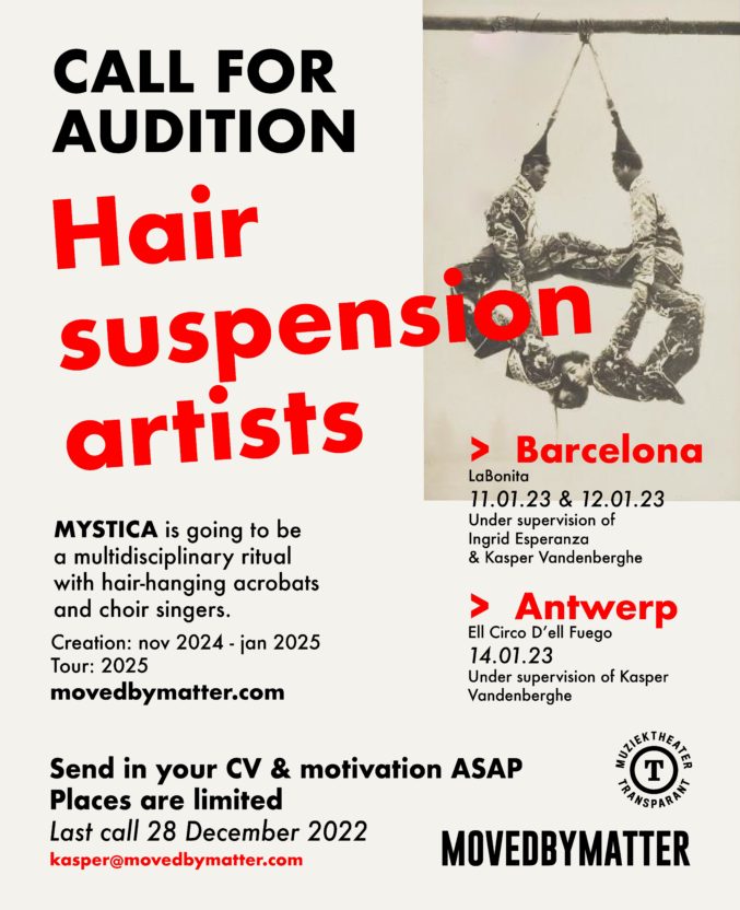 Kasper Vandenberghe zoekt momenteel hair suspension artiesten voor zijn nieuwe voorstelling MYSTICA!